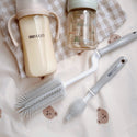 The Moyuum Silicone Brush Set offers a safe and efficient cleaning solution for baby bottles, nipples, and feeding accessories. Made from premium silicone, the brushes are durable, hygienic, and gentle on delicate surfaces. The set includes a larger brush for bottles and a smaller one for nipples and small parts. Both brushes feature soft, flexible bristles for thorough cleaning without scratching. Ergonomic handles ensure a comfortable grip, and the brushes are heat-resistant from -20°C to 250°C, making them safe for boiling and dishwasher use.