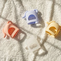 The Moyuum Silicone Elephant Wrist Teether is made from 100% silicone, ensuring it's soft, safe, and free from harmful chemicals like BPA, PVC, and phthalates. Designed to be worn on a baby’s wrist, it stays secure and accessible for teething relief. Its adjustable wristband fits various wrist sizes, and the elephant-shaped design features soothing textures, such as the trunk and tail, to massage the gums. A protective case is included for hygienic storage and easy transport.